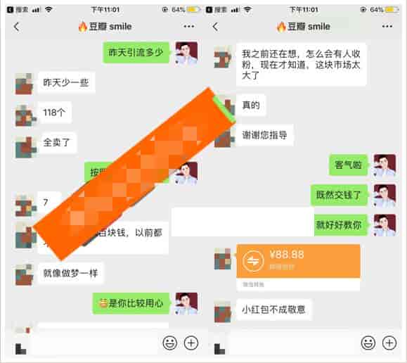 我的朋友smile,在湖南一所二本大学读书,想在网上做点兼职,但是先后被割了韭菜,淘宝刷单、打字兼职、百青藤项目…后来将信将疑地找到我,打算学习豆瓣引流,刚开始不顺利,后来给他指导了两三次,现在每天可以引流100多粉丝,直接变现800多块钱。
