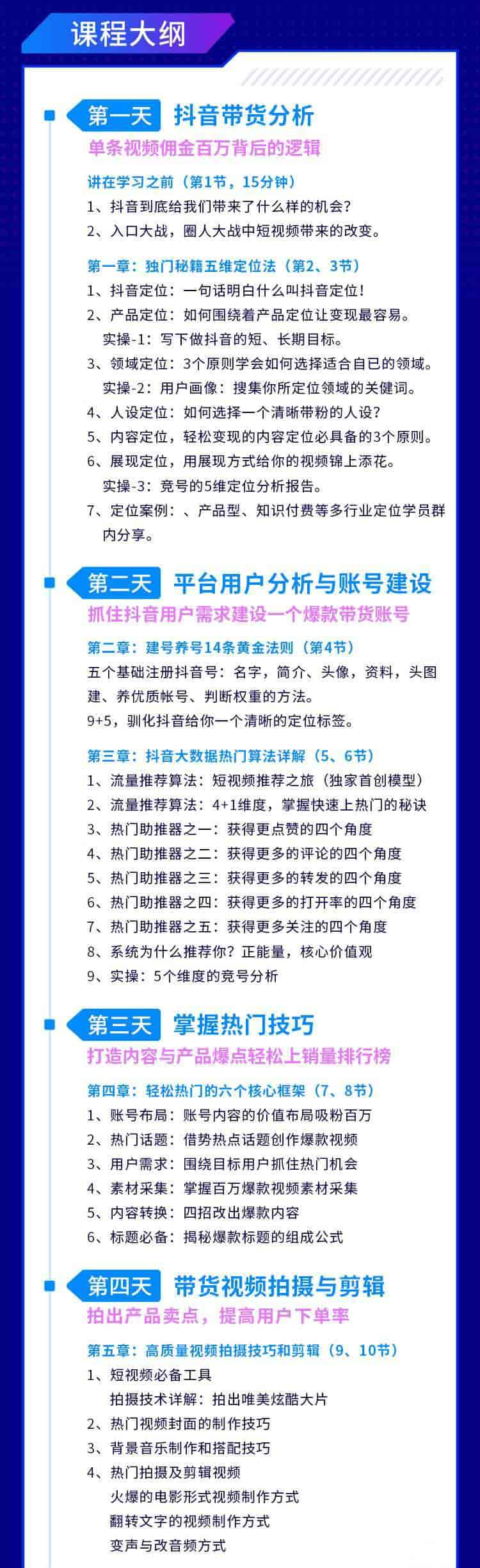快马短视频商学院三个月实战抖音卖货佣金超过6000万,总结了一套可复制的卖货玩法,在这次爆款课为你揭秘佣金百万背后的秘密,教你从账号准备开始,在到内容打造与产品爆点,让你轻松上销量排行榜,最后教你涨粉布局,多维变现,规模化运营,切切实实带你赚到抖音第一桶金。