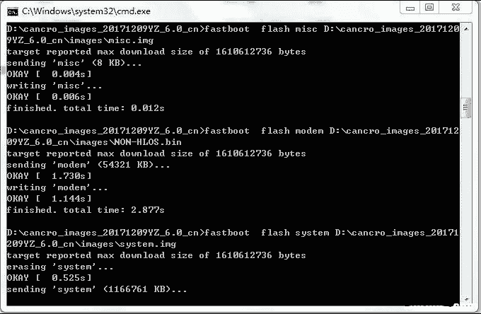 3、右键以管理员模式,打开“一键刷机”批处理文件,耐心等待刷机完成,手机自动重启!第一次开机需要5-10分钟