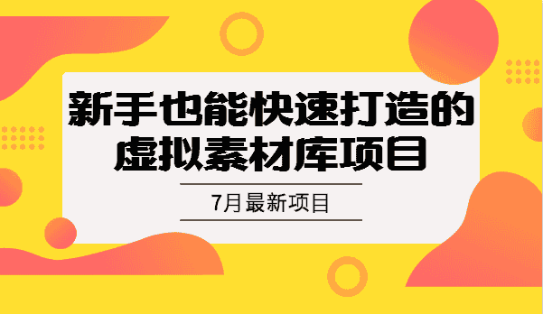 虚拟项目特训营7月15号:新手快速上手虚拟项目,打造免费虚拟素材库(视频教程)