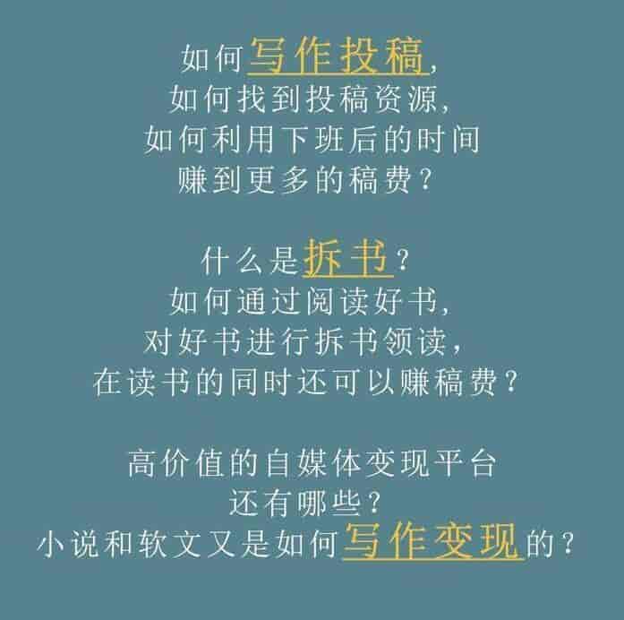 独家投稿资源和选题:100份公众号投稿资源,500份写作选题,800份纸媒投稿资源,还有一份详细的投稿模板。只要你肯做,就会有稿费收。