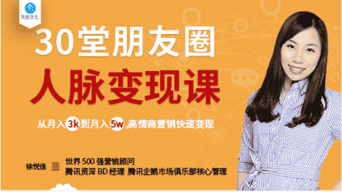 30堂朋友圈人脉变现课:从月入3千到月入5万,高情商营销快速变现