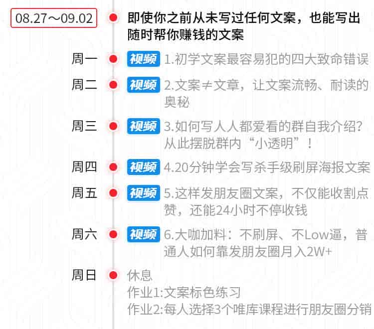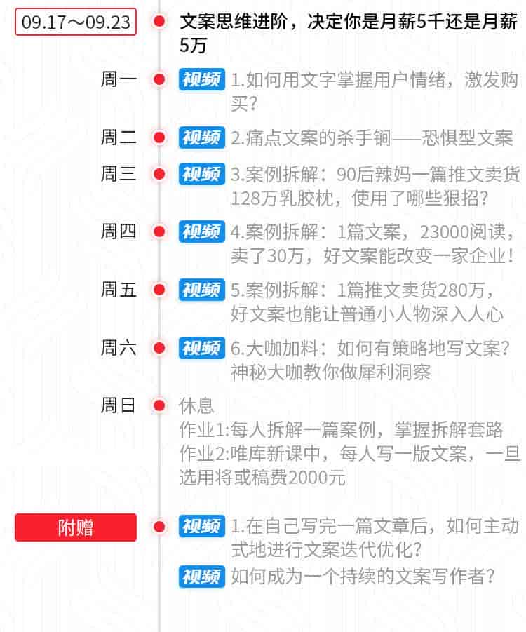 我会把我这一年来,经过疯狂摸索、实战,以及交了无数学费,所沉淀下来的一整套复制性、可操作性极强的文案写作系统,毫无保留地融入到30节大课中,可能超乎想象。