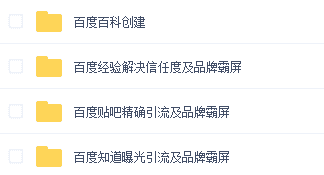 这是一套百度引流霸屏技巧的学习视频,涵盖知道、百科、经验、贴吧四个领域,有非常完整的教学框架与教学视频,非常细致的讲解了多种引流方法,比如曝光引流、精确引流、品牌霸屏等方法,让你从零开始学习,彻底了解引流技巧,在宣传推广方面快人一步!