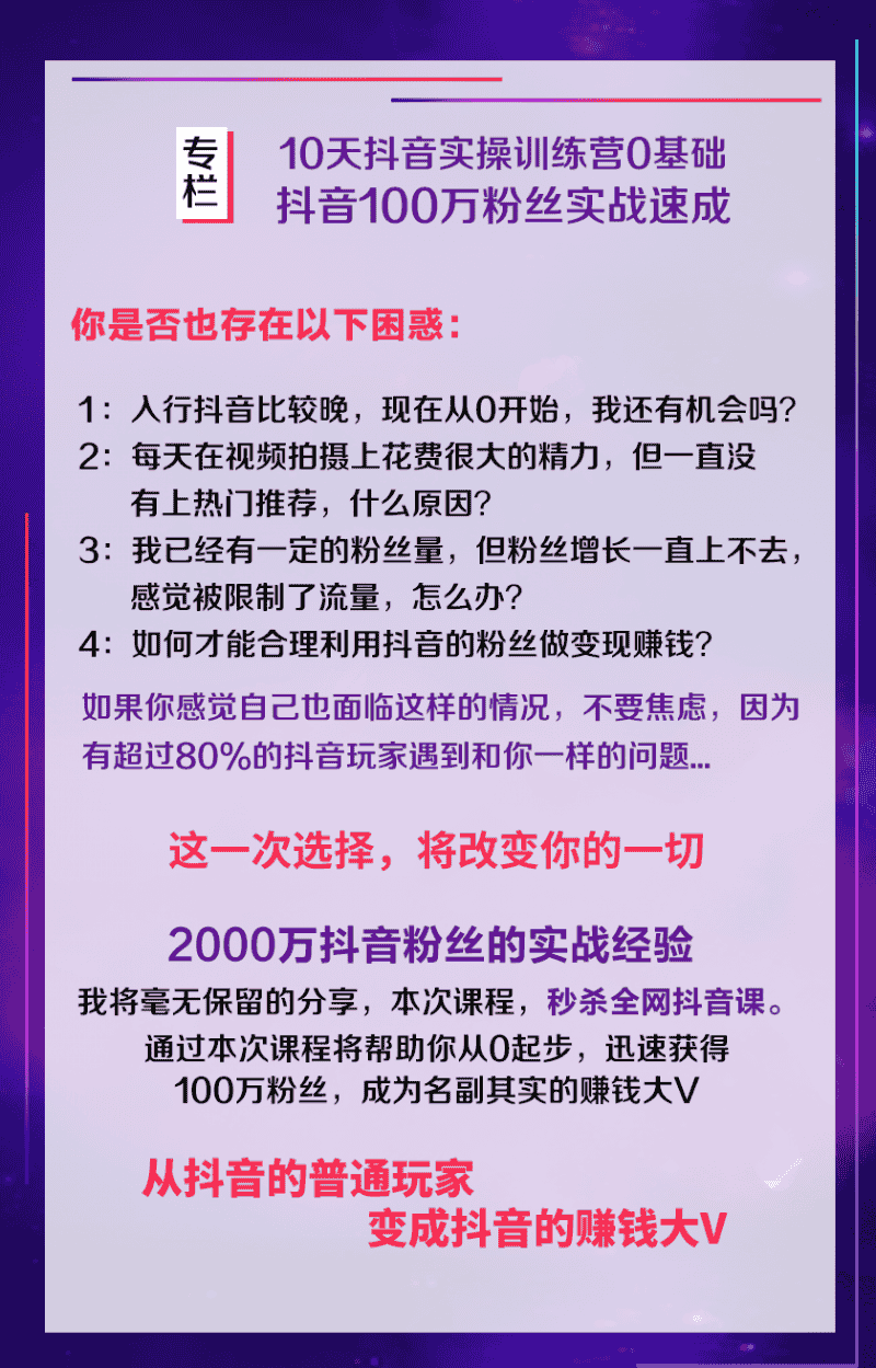 [项目营销] 从0起步打造100万粉丝抖音月入5万课程