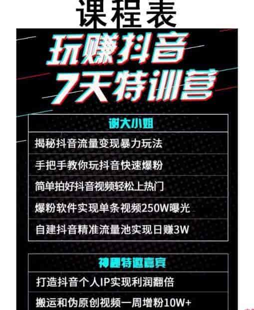 短视频赚钱风口《玩赚抖音7天特训营》日赚3W+(附全套资料+软件)