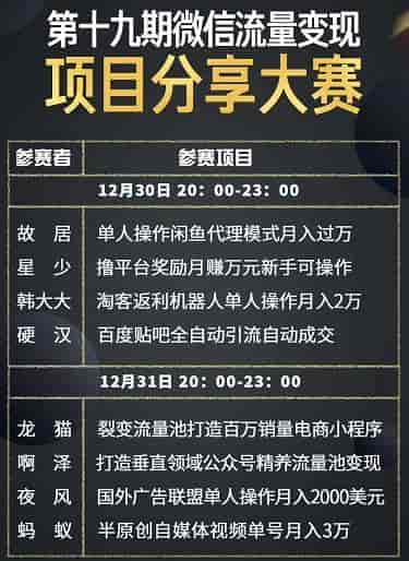 项目名称:财神大咖第十九期分享会:微信流量变现网赚大赛