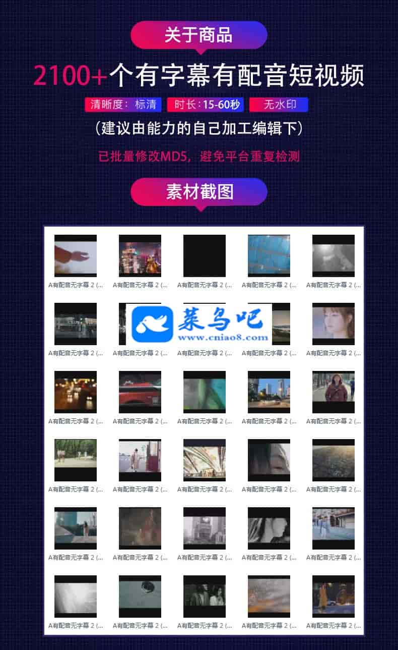 [项目营销] 抖音快手火山微视热门短视频2400+个素材情感励志鸡汤成品无水印高清视频