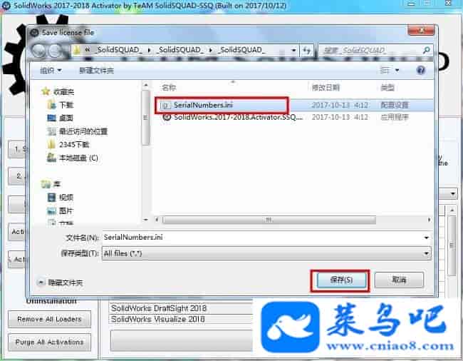 8、弹出文件选择窗口,选择“SerialNumbers.ini”文件,并点击保存