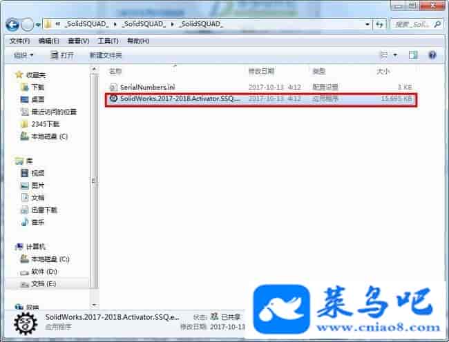 1、完成安装,回到“S01idW0rks.2018.SPo.Premium-0daydown”-“_SolidSQUAD_”文件夹,进入解压下来的_SolidSQUAD_文件夹,双击运行“SolidWorks.2017-2018.Activator.SSQ.exe”Solidworks2018破解文件
