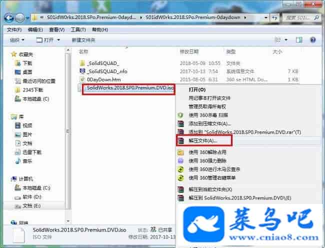 13、完成以上的操作,现在用户就可以开始接下来的安装和破解啦。Solidworks2018安装教程1、之后再次回到刚才所解压下来的“S01idW0rks.2018.SPo.Premium-0daydown”文件夹,鼠标右键解压“SolidWorks.2018.SP0.Premium.DVD.iso”压缩文件