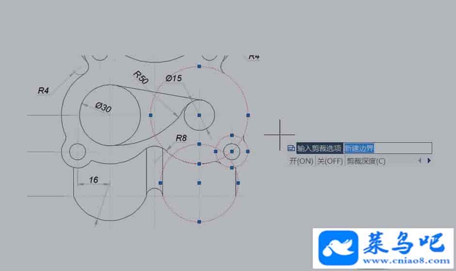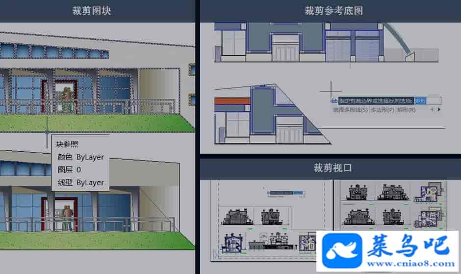 裁剪的总命令,裁剪图块、外部参照、视口、光栅图像、参考底图均可使用此命令。