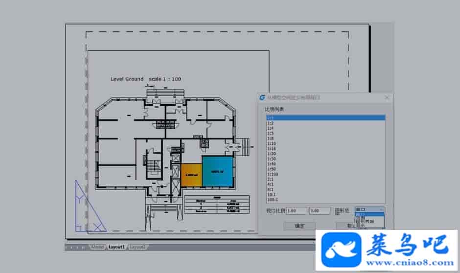 从模型空间来确定视口显示的图形范围,然后根据设置的比例来计算视口大小并在布局空间定位视口。