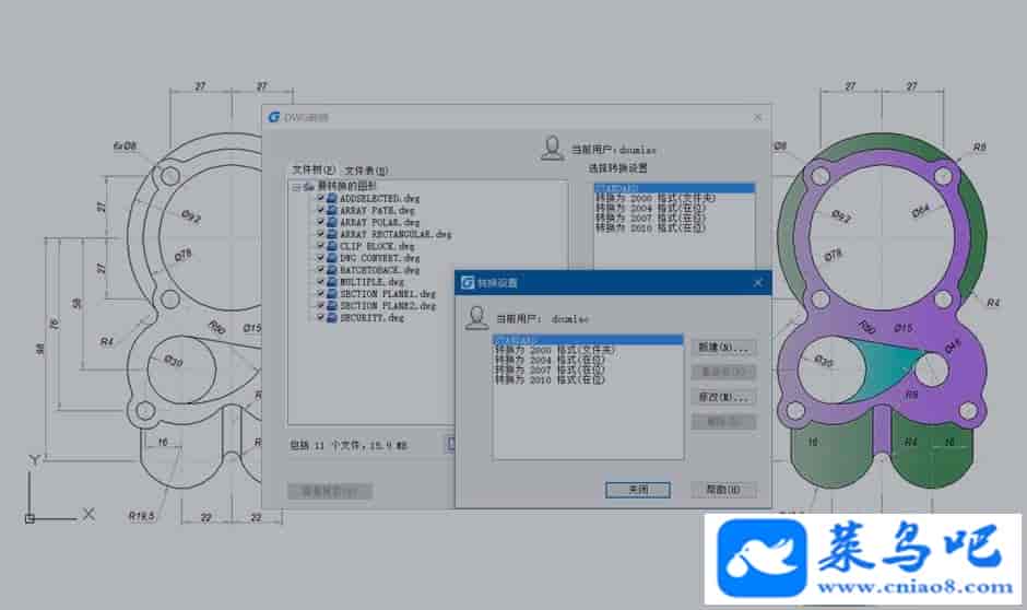 可批量对文件的版本进行转换,无需一张张打开图纸进行另存。新生成的文件可覆盖原始文件,或压缩文件。