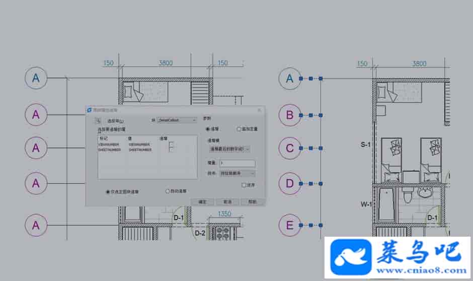 根据用户设定的方式对同同名属性块的属性值进行排序和递增处理。提供自动递增和手动递增两种方式。