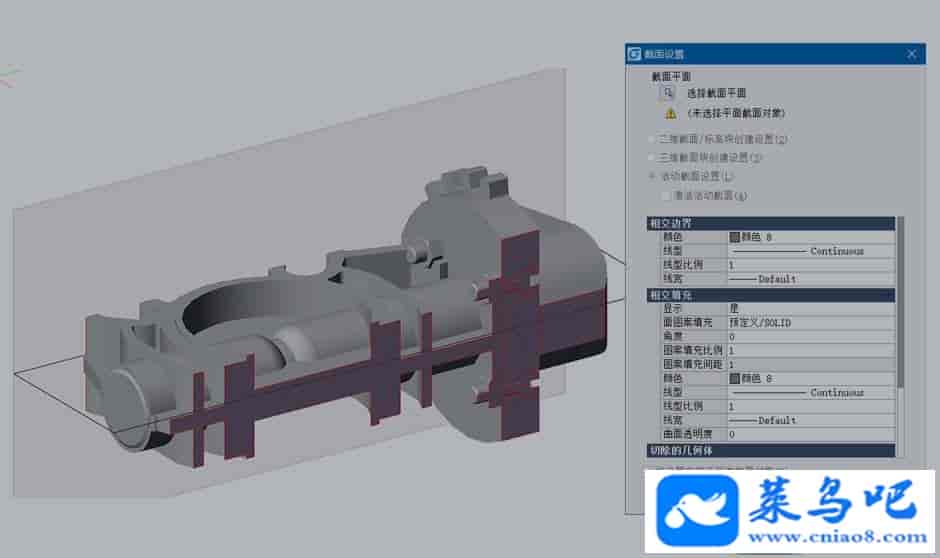 截面平面用于在三维实体、曲面或面域中,创建平面或折弯的截面来观察模型的内部结构,将截面转为图块。