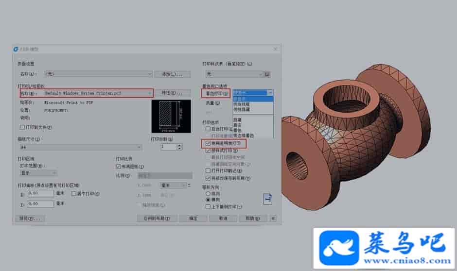 提升三维图纸着色和消隐打印的分辨率,可以得到更清晰的打印效果。支持在任何机器上使用绘图驱动程序。