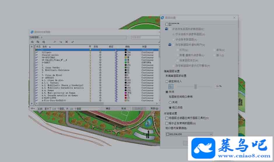 图层管理器中增加图层设置的选项,可设置图层过滤器、图层属性管理器中的视口的背景颜色等。