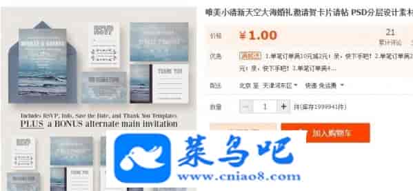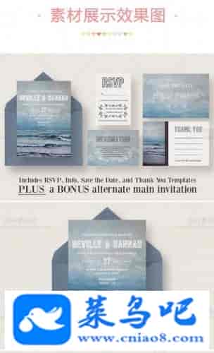 唯美小清新天空大海婚礼邀请贺卡片请帖 PSD分层设计素材含字体