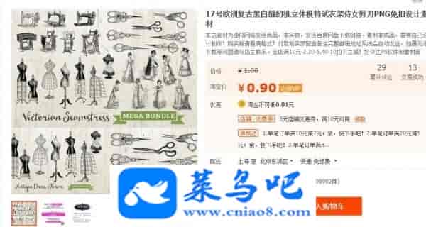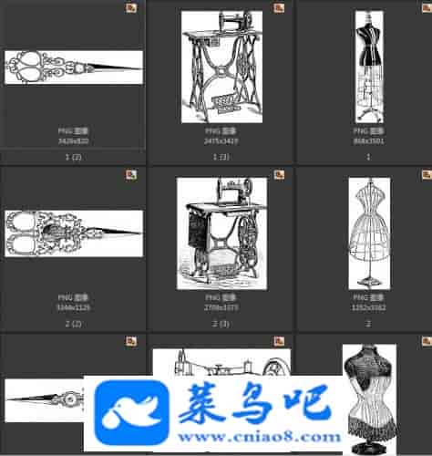 欧洲复古黑白缝纫机立体模特试衣架侍女剪刀PNG免扣设计素材