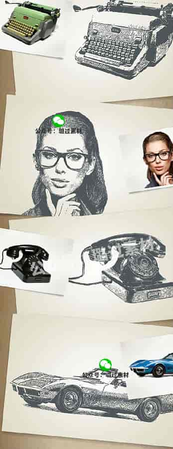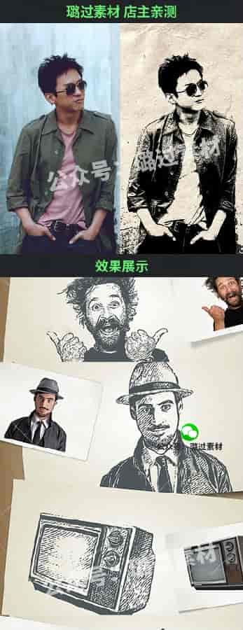 PS创意人像手绘素描ps动作 影楼后期合成源文件 特效修图设计素材