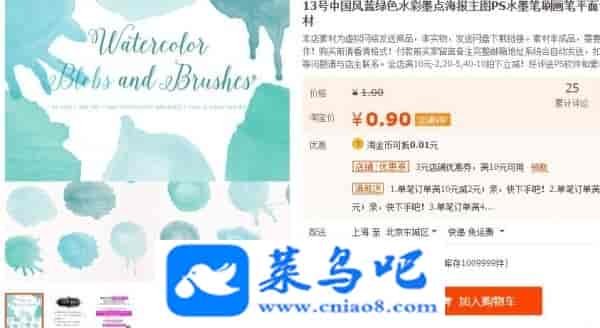 中国风蓝绿色水彩墨点海报主图PS水墨笔刷画笔平面设计素材