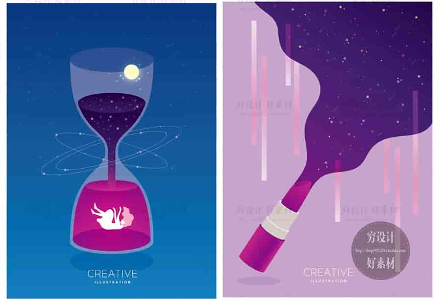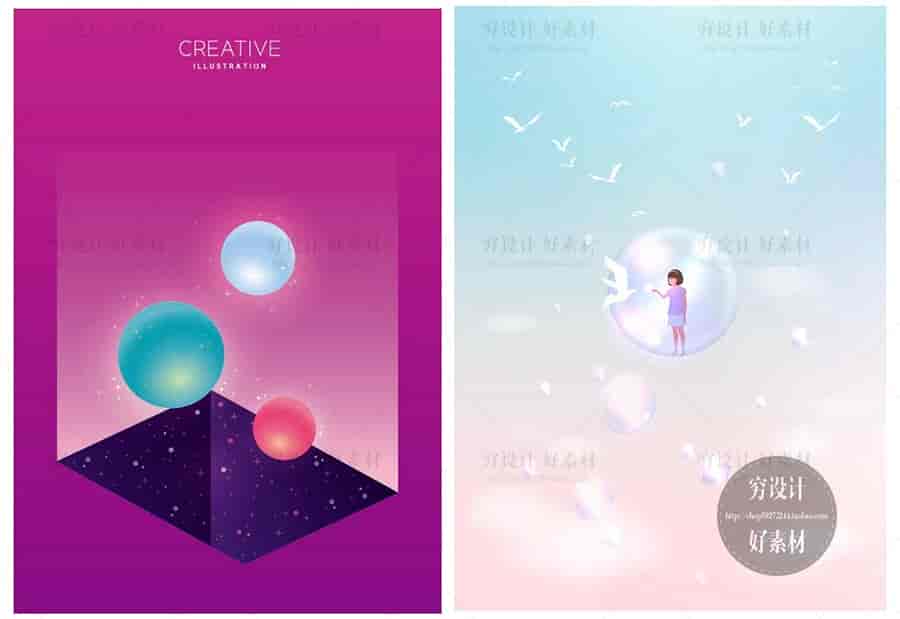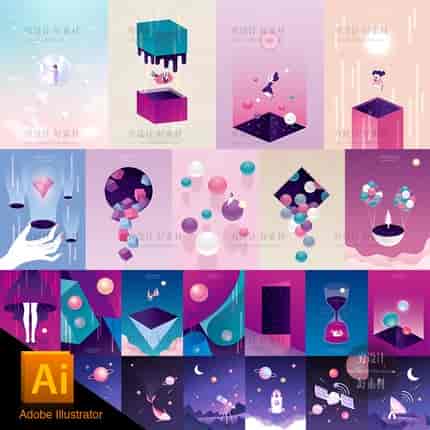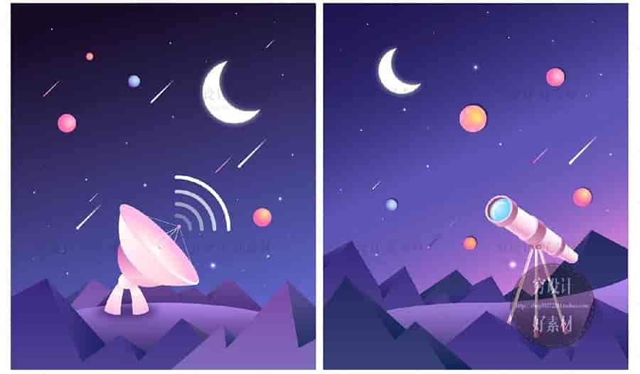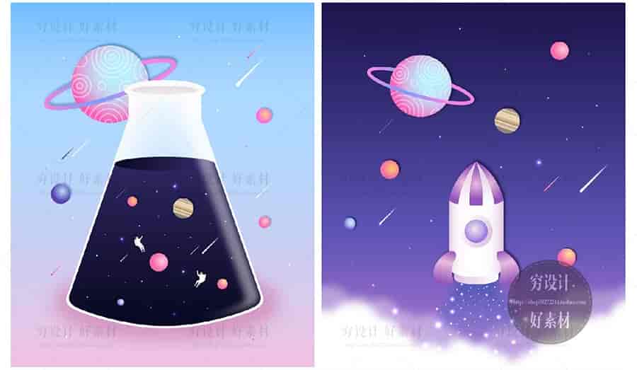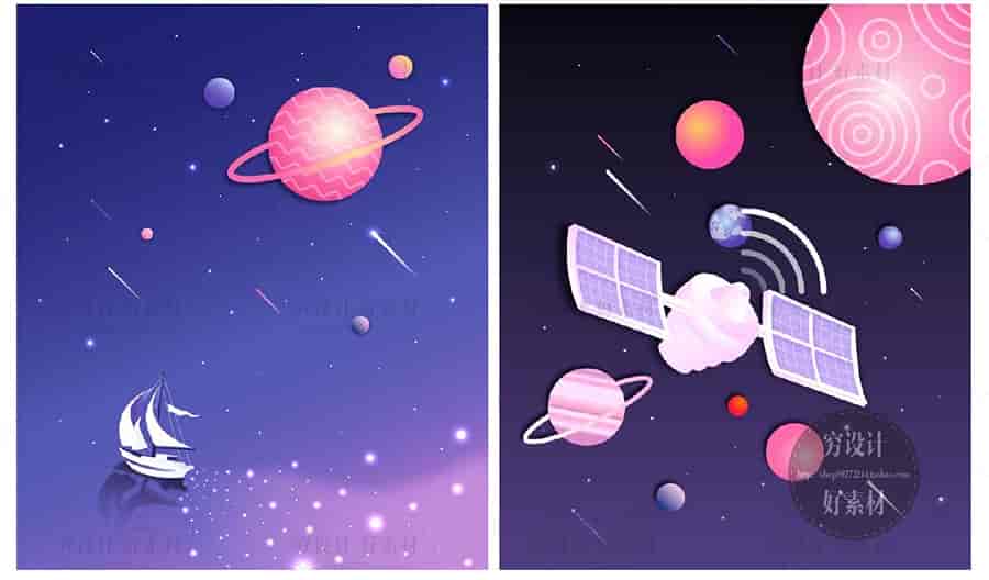 AI矢量创意扁平化插画梦想愿景气球宇宙太空元素海报宣传 G1696