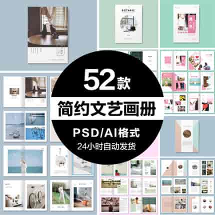 欧美时尚简约杂志画册AI素材大气日系文艺书籍封面设计psd模板