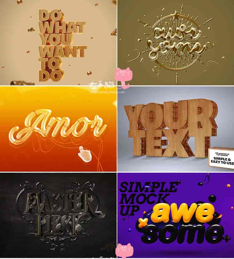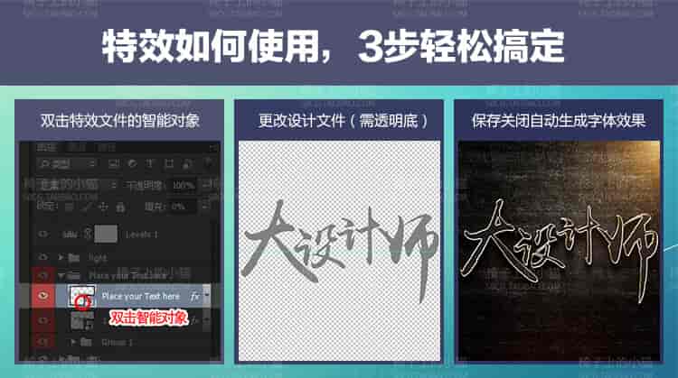 海报字体特效PSD文字3D立体ASL图层样式金属效果智能对象设计素材