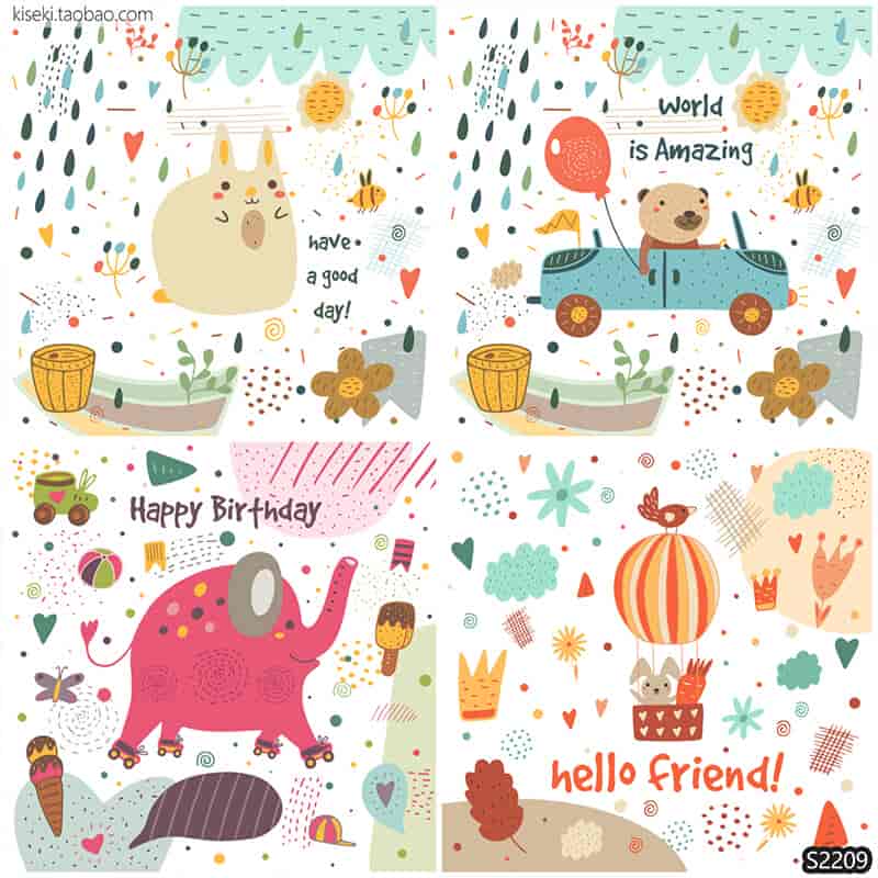 童话森系卡通可爱Q版手绘儿童插画动物兔子大象背景封面矢量素材
