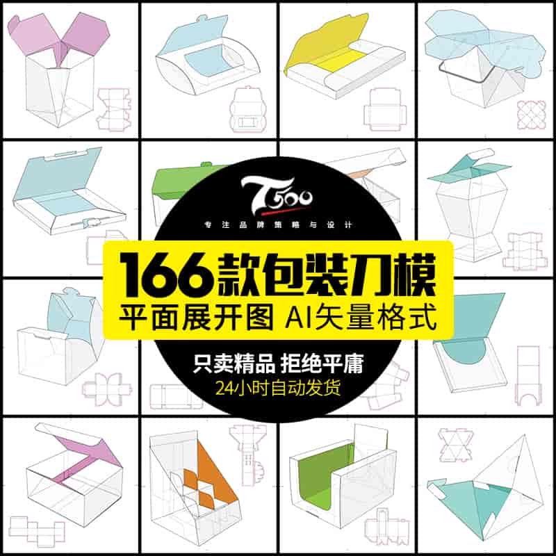 纸盒纸箱礼盒产品包装刀模图折叠平面展开图异形盒AI矢量设计素材