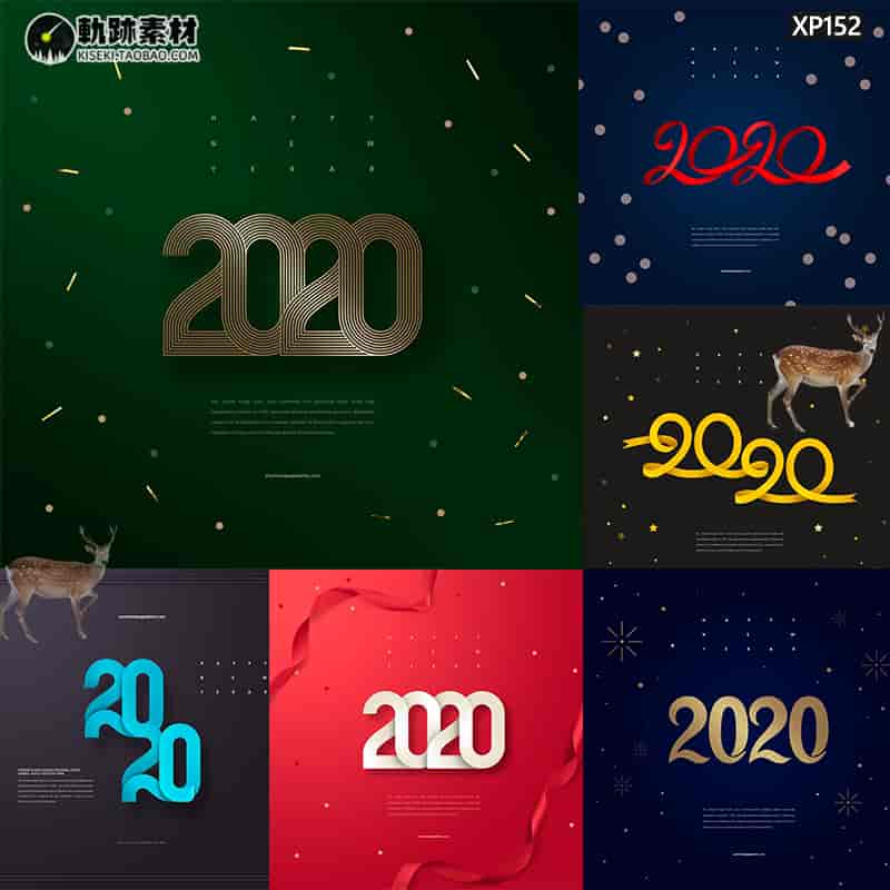 创意2020年数字元旦新年跨年艺术文字电子卡片图海报PSD模板素材