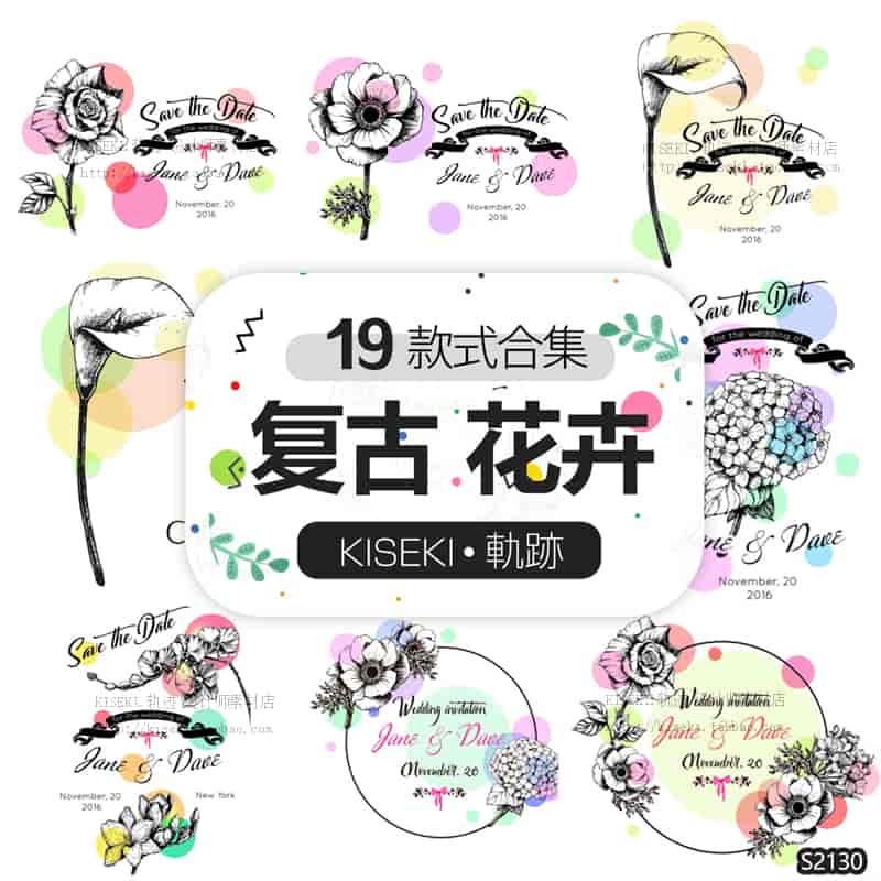 复古唯美花卉线条线稿艺术欧式婚礼请柬时尚 eps ai矢量图素材