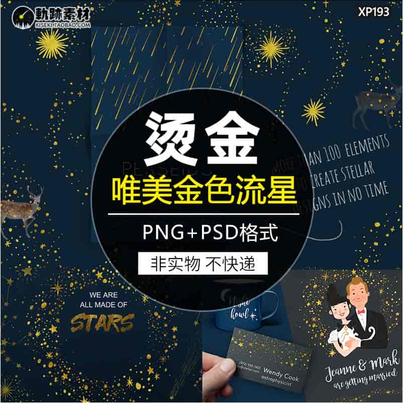 唯美金色星空流星月亮星座婚礼请柬边框PSD背景卡片PNG免抠素材ps