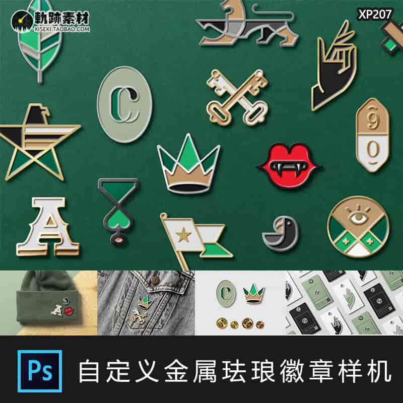 金属珐琅胸针徽章别针纽扣智能贴图样机效果图标志PSD设计素材PS