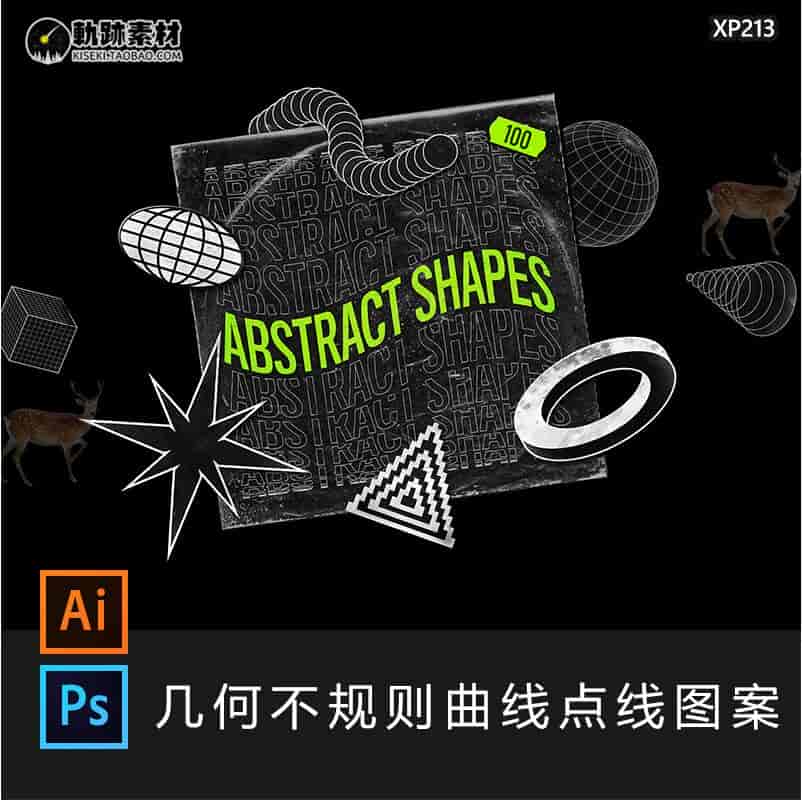 黑白简约抽象潮流几何循环不规则曲线线条ai图形PNG设计素材PS