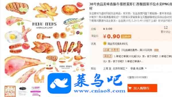 食品美味香肠牛排煎蛋虾仁西餐图案手绘水彩PNG免抠设计素材