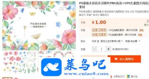PS清新水彩花卉边框叶PNG免扣+EPS矢量图片网店美化装饰设计素材
