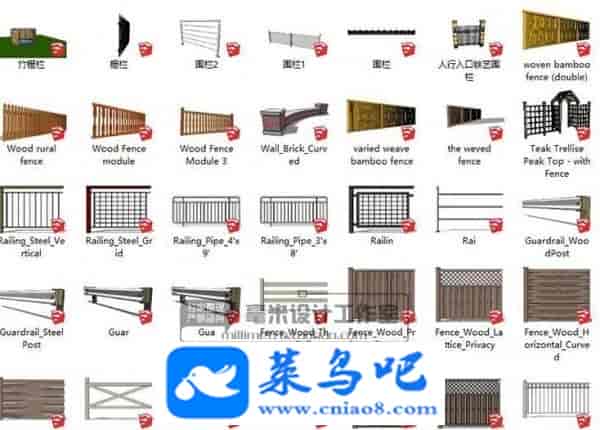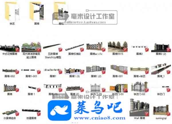 围墙栏铁艺护栏SU模型栅栏篱笆栏杆sketchup建筑景观构件设计素材