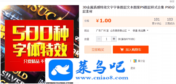 500款字体特效 格式包括 智能对象/图层样式 文件大小:9.6G