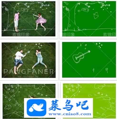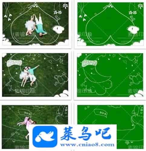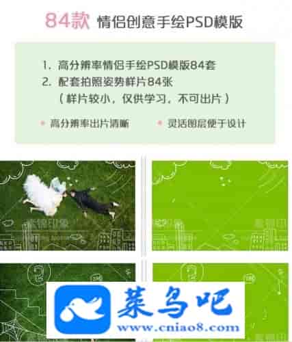 创意情侣写真手绘PSD模版 影楼婚纱后期设计背景 卡通分层素材