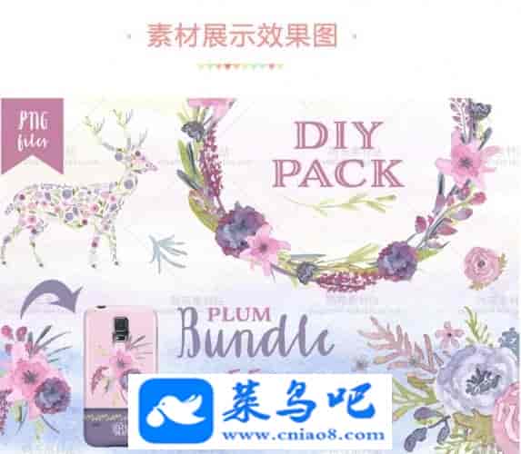 PNG免抠森系水彩手绘花环叶子藤条鹿角花朵海报请帖标志卡片素材