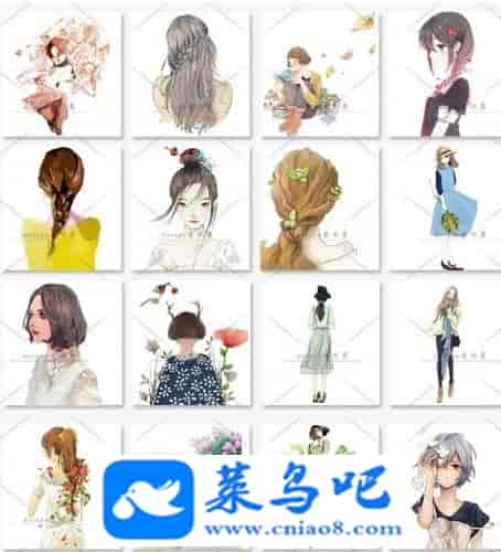 唯美水彩手绘少女插画小清新女孩人物临摹PNG免抠透明设计素材