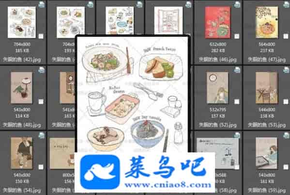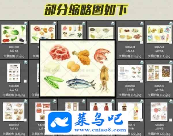 水彩插画素材 卡通美食类手绘 食物绘画图片 水彩绘画152P 1000种