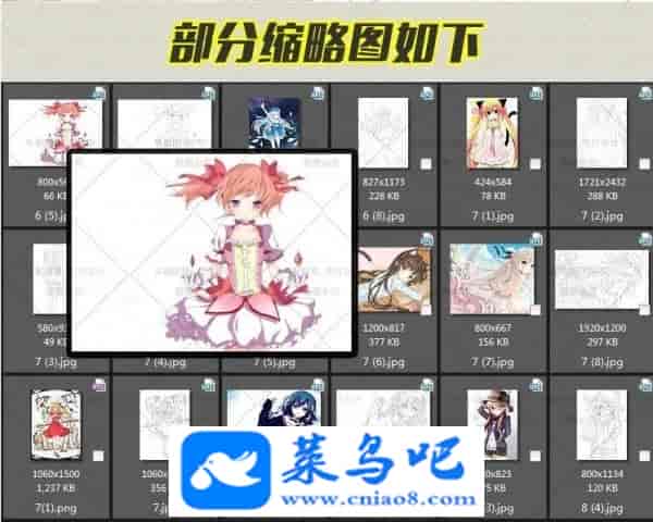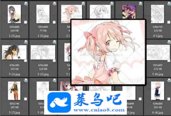卡通动漫美少女线稿+彩色对比图 上色练习临摹手绘画插画素材