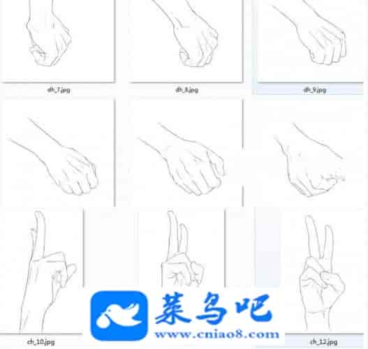 美术绘画速写练习漫画手绘手的多角度透视动作姿态线稿素