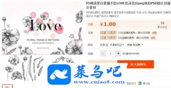 PS唯美黑白素描手绘LOVE花朵花环png免扣PSD图片封面卡