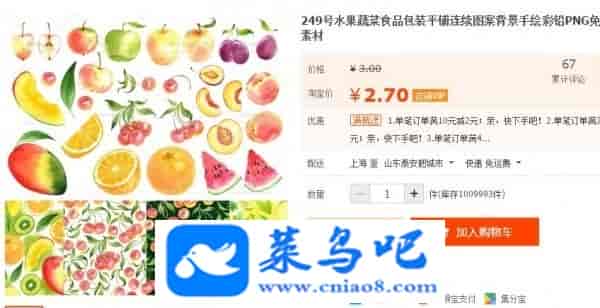 格式:PNG+JPG尺寸:见截图数量: 水果PNG40张,蔬菜PNG26张,填充图案JPG20张容量:298MB 用百度云管家下载