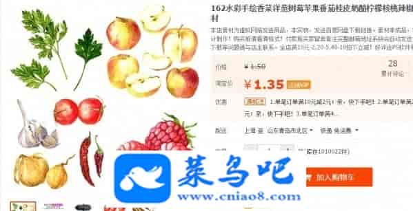 水彩手绘香菜洋葱树莓苹果番茄桂皮奶酪柠檬核桃辣椒矢量