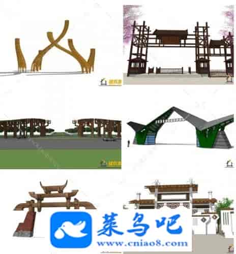 SU徽派美丽乡村村庄农家乐农庄入口标识村标入口标示马头